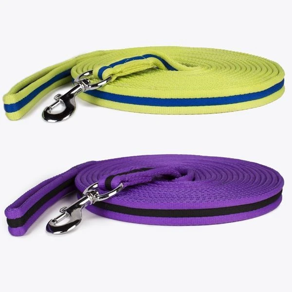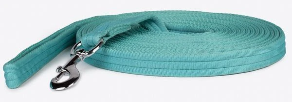 This lunge line is made of soft webbing with a trigger snap that is extremely comfortable to hold.